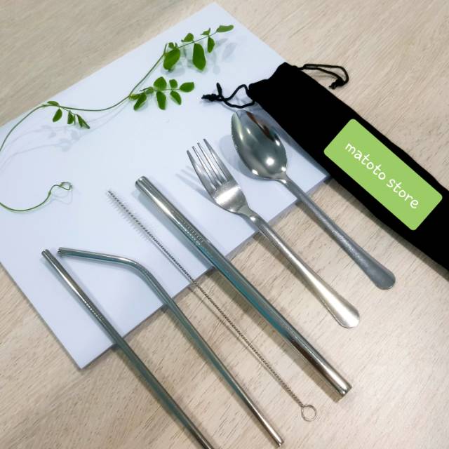 Package 7 in 1 :- 1 pc sedotan bubble,- 1 pc sedotan lurus standard,- 1 pc sedotan bengkok standard,- 1 pc sikat sedotan- 1 pc Velvet pouch- 1 ea dinner spoon- 1 ea dinner forkSedotan Stainless Stell Sendok GarpuMaterial Sedotan stainles SUS 304 ya sangat mengkilap dan Matrial Stainless 410 untuk Sendok dan Garpu(Best Stainless Steel CUTLERY Material than the Others & Food Gr