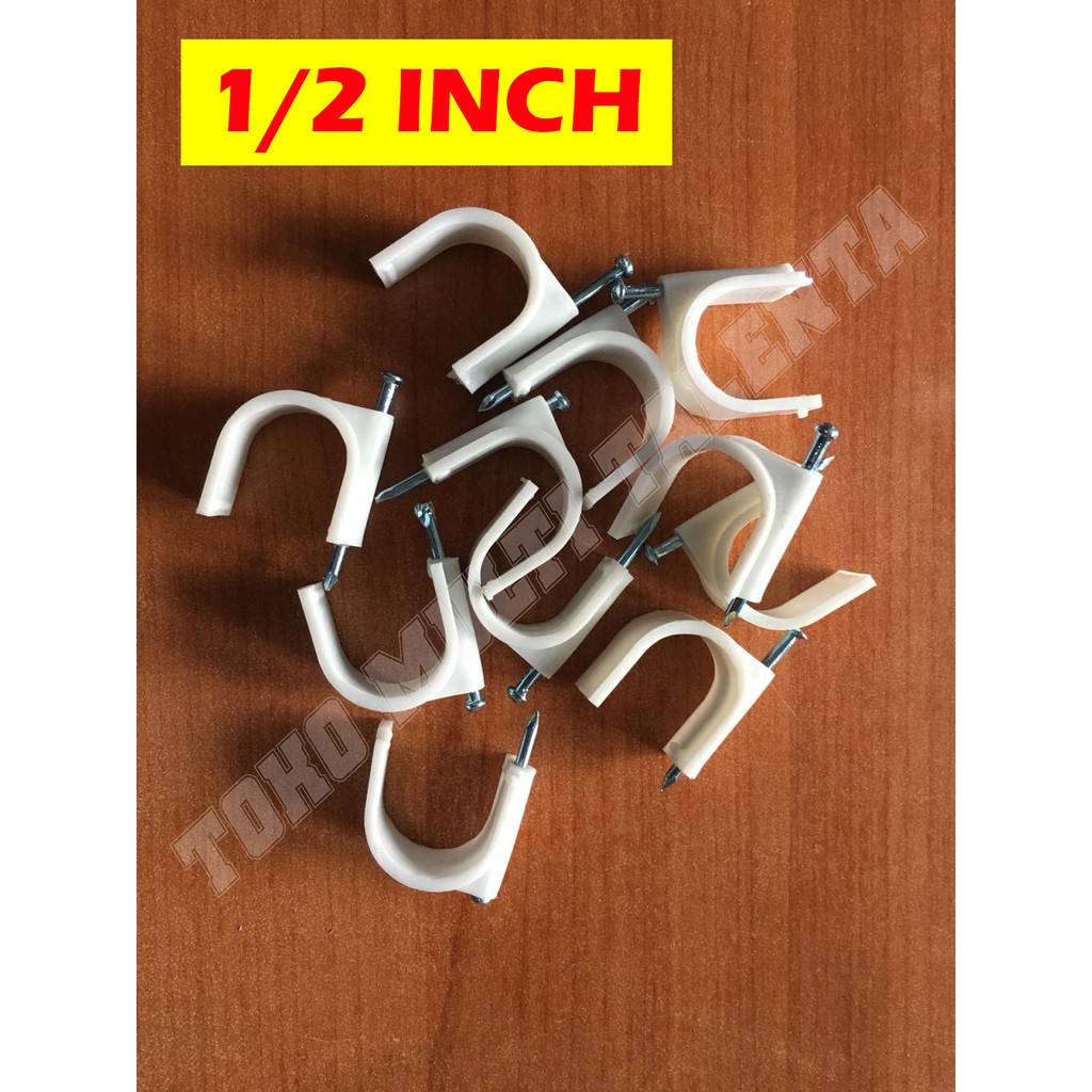 Bahan : PVC / PlastikUkuran : 1/2 inchHarga tertera sudah termasuk paku untuk pemasangan klem tersebutHarga yg tertera merupakan harga /buahKETENTUAN PENGIRIMAN BARANG: (Hari Minggu TIDAK ADA pengiriman barang)- Via Ekspedisi = Jam 15.00 WIB setiap harinya (order yg masuk lewat dari jam tersebut, akan dikirim hari berikutnya)- Via Gojek / Grab Sameday = Request pick up terakhir jam 14.00 WIB (lewat dari jam tersebut, akan diproses hari berikutnya)- Order yg masuk hari Sabtu & lewat dr jam 15.00 WIB akan diproses hari Senin, dikarenakan hari minggu toko