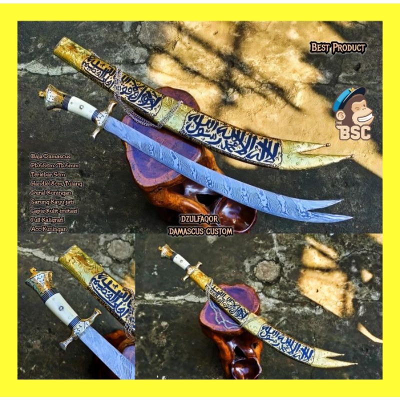 Name: Pedang Dzulfaqor Damascus Costum Lafadz Super Tajam Kuat Awet Pajangan