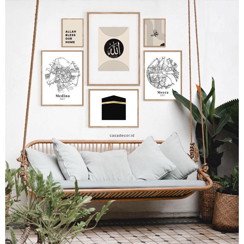Grosir Perlengkapan di Kabupaten Bandung Barat Set Islamic Walldecor (maps Mecca Medina Ka’bah Modern Kaligrafi Allah Muhammad) dari Casadecor.id Kota Malang