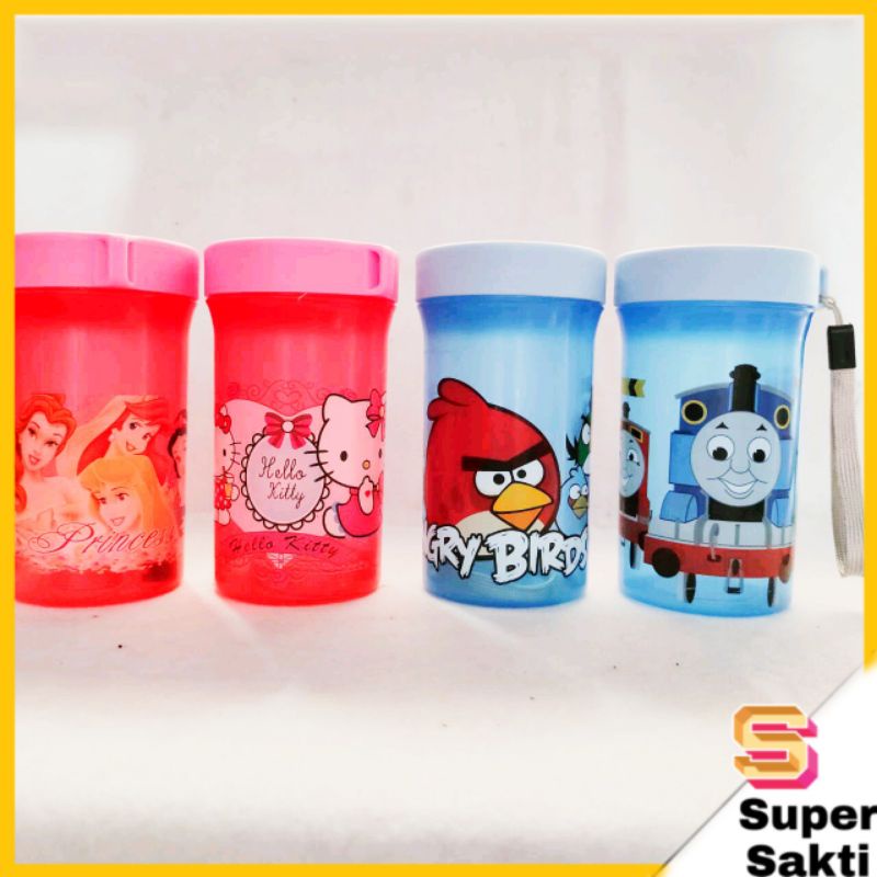 Gelas gambar karakter 360 mlMotif :Angry birdPrincessThomasHello kittypengiriman kena volumeestimasi ukurantinggi 13 cm. diameter 7.