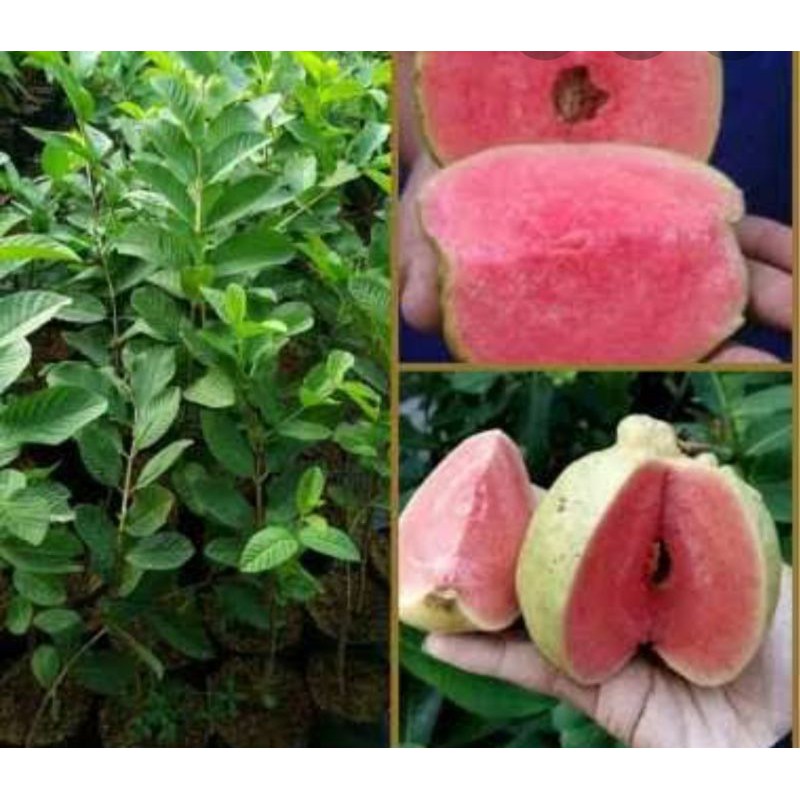bibit jambu kristal merahhasil okulasiukuran 40-50cmBuah jambu kristal merah berbentuk bulat dengan bobot satu buahnya mencapai 400-500 gram. Daging buahnya berwarna merah segar, daging buahnya tebal, dan hampir tanpa biji. Buah jambu kristal merah mempunyai citarasa yang manis dengan tekstur yang re