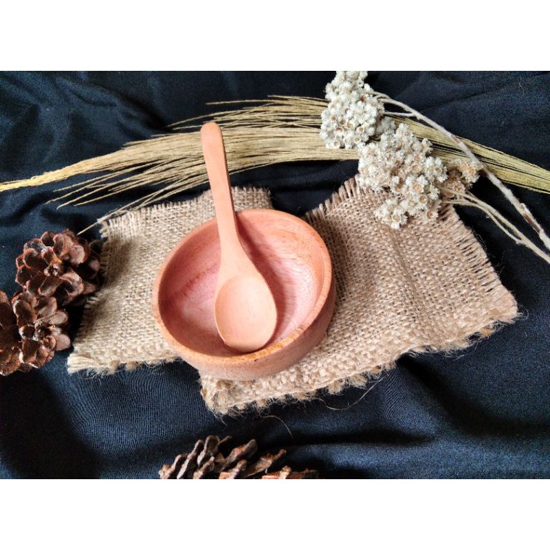 Cuci Gudang Perlengkapan di Kota Madiun 1 Set Mangkok Kayu Dmt 8cm + Sendok Pj 10cm Atau 12cm / Mangkok Masker/ Mangkok Sambal dari Muflich Shop Kab. Malang