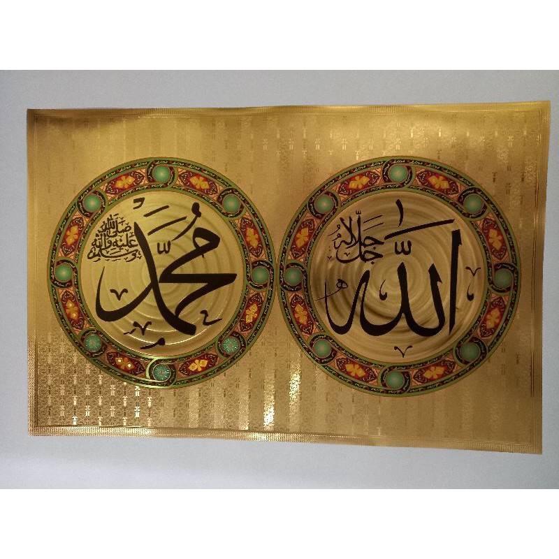dengan warna emas sangat bagus menyesuaikan dinding , ukuran 58 x 38 cmbahan alminium foil emas kuat dan tahan l