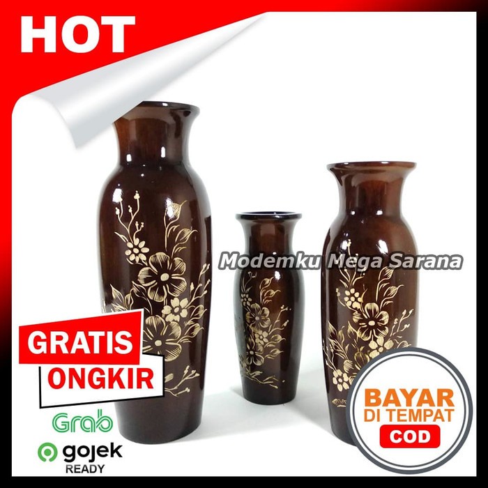 Vas Bunga Kayu Jati Motif Bunga - VSA008 terbuat dari kayu jati dengan finishing model bunga. 1 sett terdiri dari 3 pcs ukuran tinggi 20, 25 & 30 cm. Vas Bunga ini sekaligus bisa untuk pajangan atau hiasan pada sudut2 rumah Anda, bisa juga di taruh di almari.Paket hemat, beli paket ini dapat 3 Vas