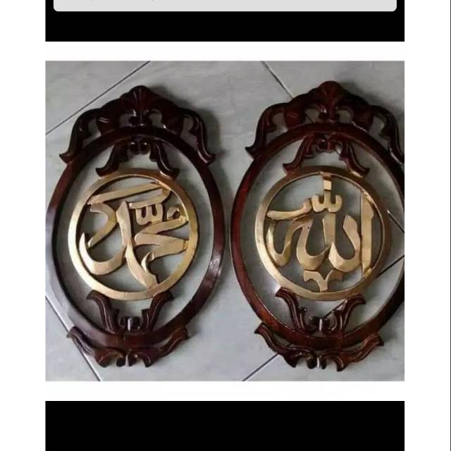 Kaligrafi Allah Muhamad kayu jati asli ukura