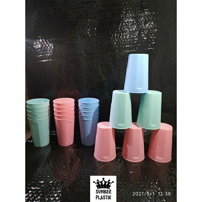 Gelas Plastik Size :Tinggi 11cm x Lebar 7.5cm x Panjang 5.5cmBerat : 30 Gramharg
